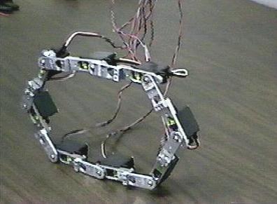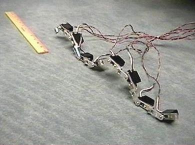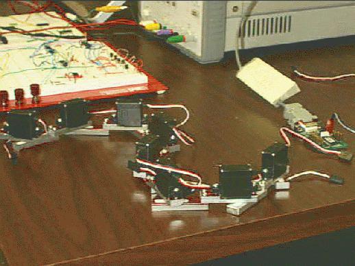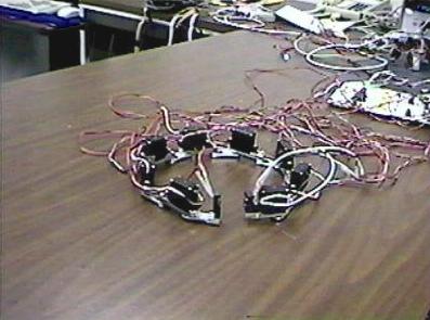 A working prototype of a miniature hexapod built using CONRO spider-links.
